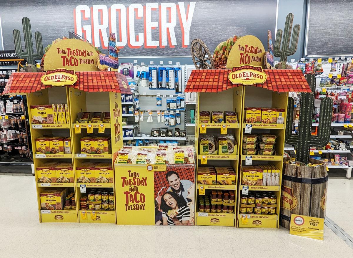Grocery Store (Food) Temporary Display | Old El Paso Taco Tuesday Display – IVE Group for General Mills | Kinder Halloween 2023 – The Mix Agency with Opal Specialty Packaging for Ferrero Australia | M&Ms World Tour – New York – XPO: The Mars Agency with 5P Group for Mars Wrigley |